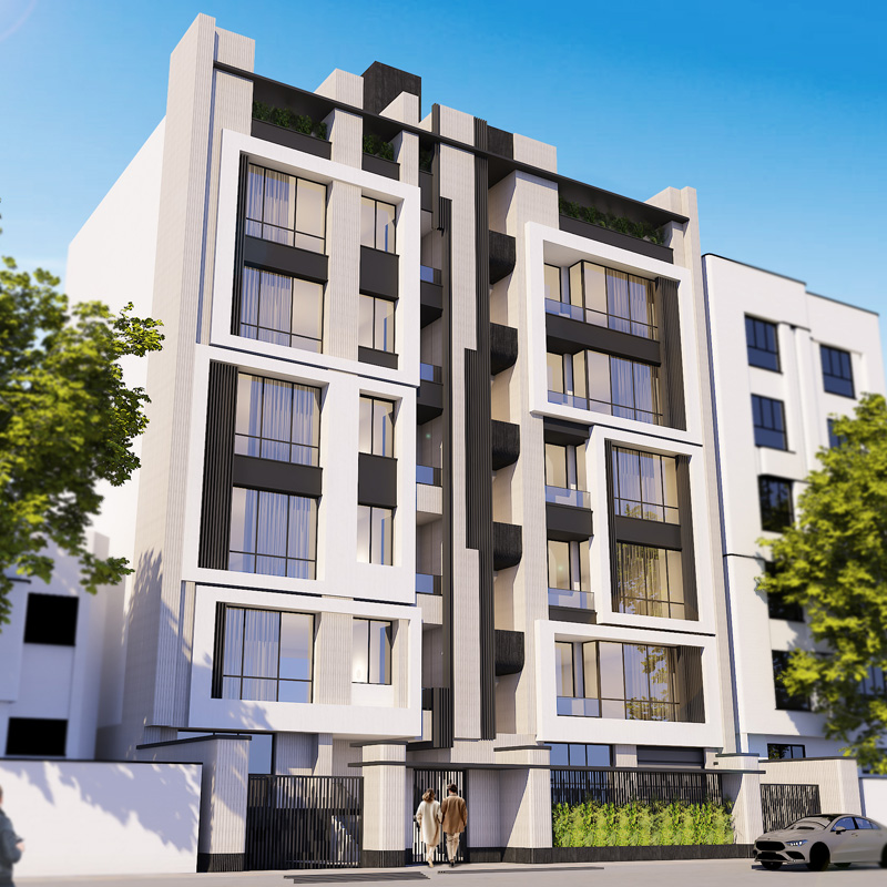 پروژه مسکونی پنج‌طبقه با طراحی دو واحد در هر طبقه، به‌همراه یک طبقه زیرزمین، به‌منظور تأمین پارکینگ و انباری برای ساکنین طراحی شده است. این پروژه با هدف ارائه فضای زندگی مدرن و مناسب، در نظر دارد نیازهای اساسی مانند دسترسی به پارکینگ و فضای اضافی برای ذخیره‌سازی را به‌خوبی برطرف کند.